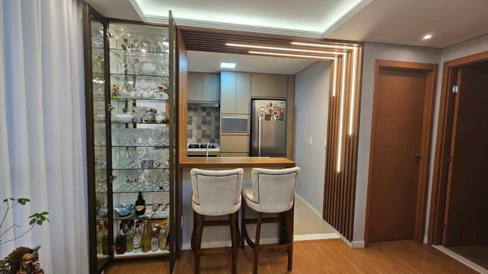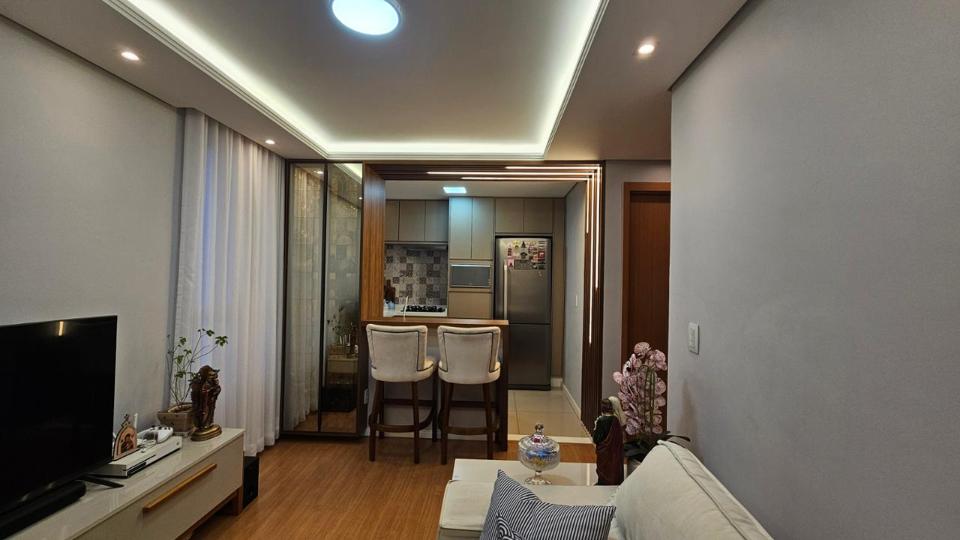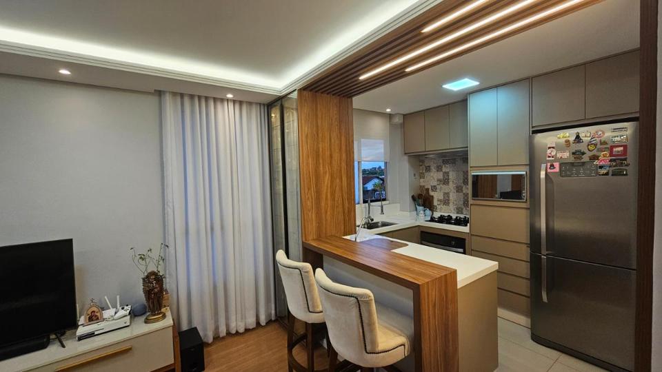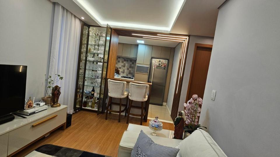 Belíssimo apartamento no condomínio Castelo de Gibraltar, próximo à UFMS. O imóvel dispõe de sala, cozinha rica em planejados, com iluminação de LED no balcão e cristaleira, fogão cooktop, depurador de ar e forno a gás. Banheiro com armários e box, além de dois quartos com planejados e uma vaga de garagem. Imóvel muito bem planejado, cada espaço otimizado visando conforto e praticidade.