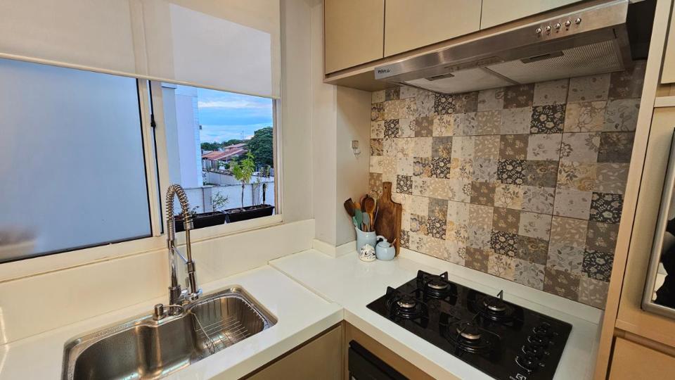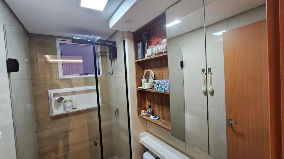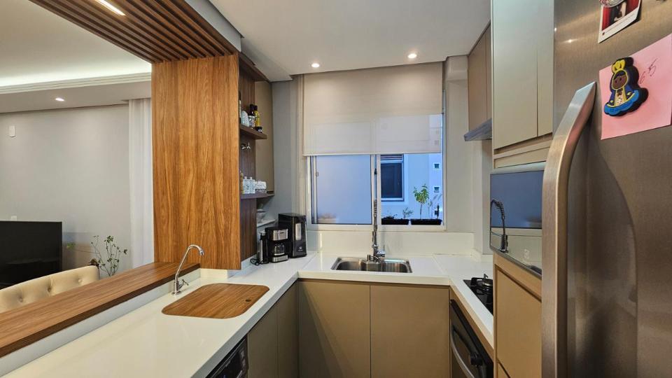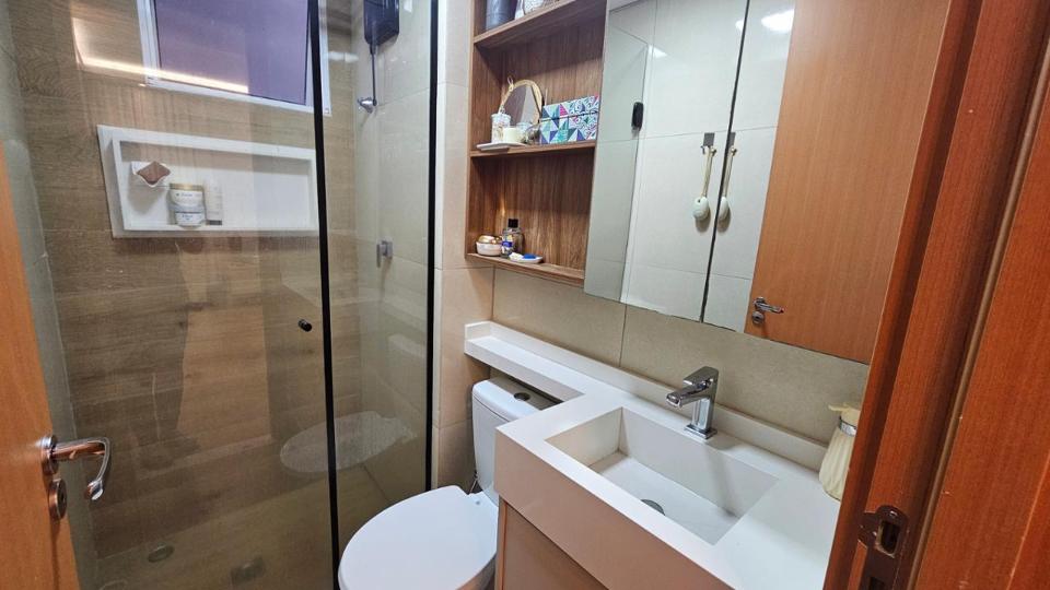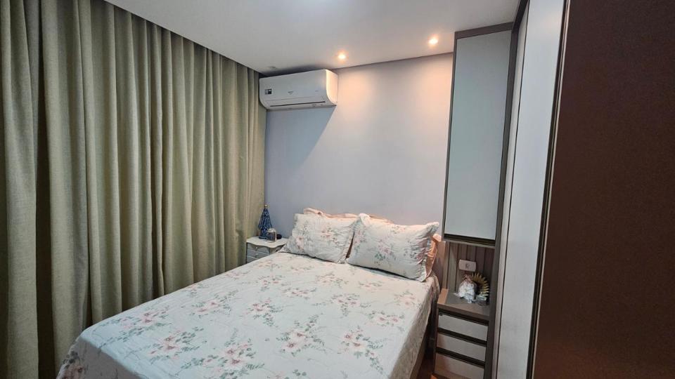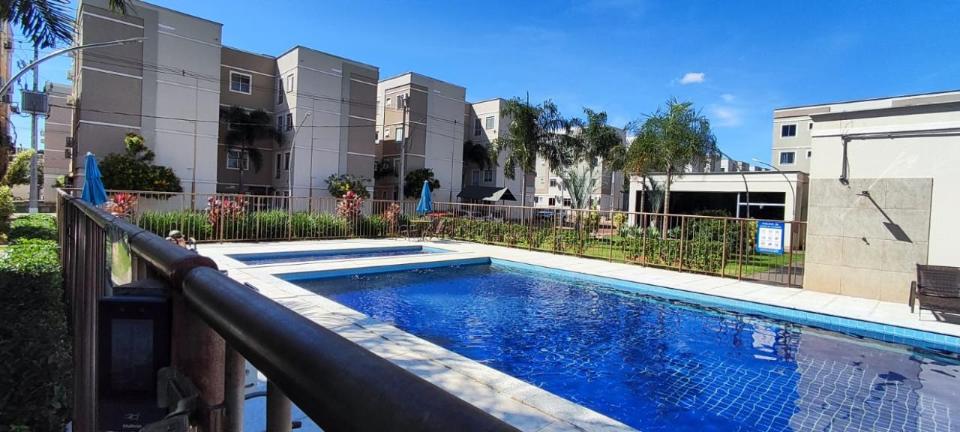 O condomínio oferece piscina, academia, salão de festas, playground, mercado autônomo, lavanderia, quadra, churrasqueira e portaria 24 horas.