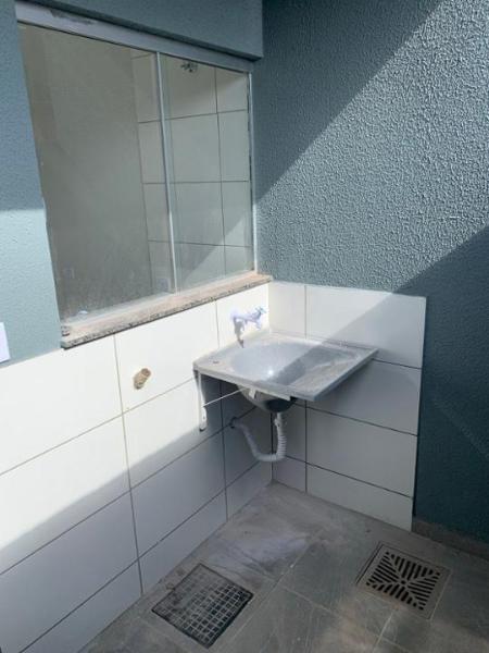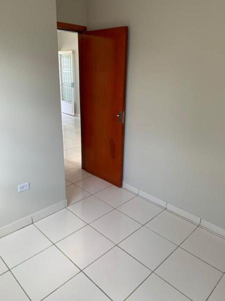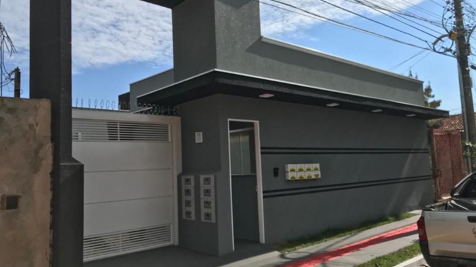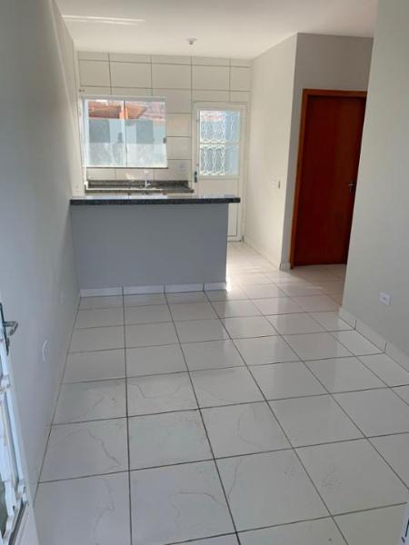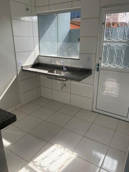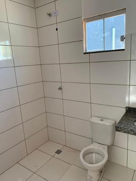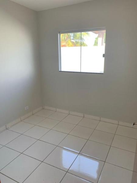 Casa possui dois quartos, sala integrada com cozinha, wc social